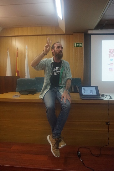 José Carlos Blanco, Claudia Lázaro (IES Santa Clara) y Tomás Recio: “MathCityMap, una aplicación para crear y experimentar paseos matemáticos a través de dispositivos móviles”. FOTO
